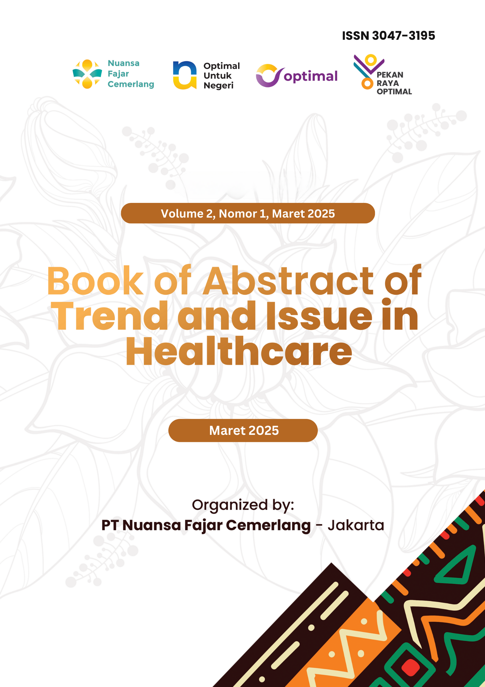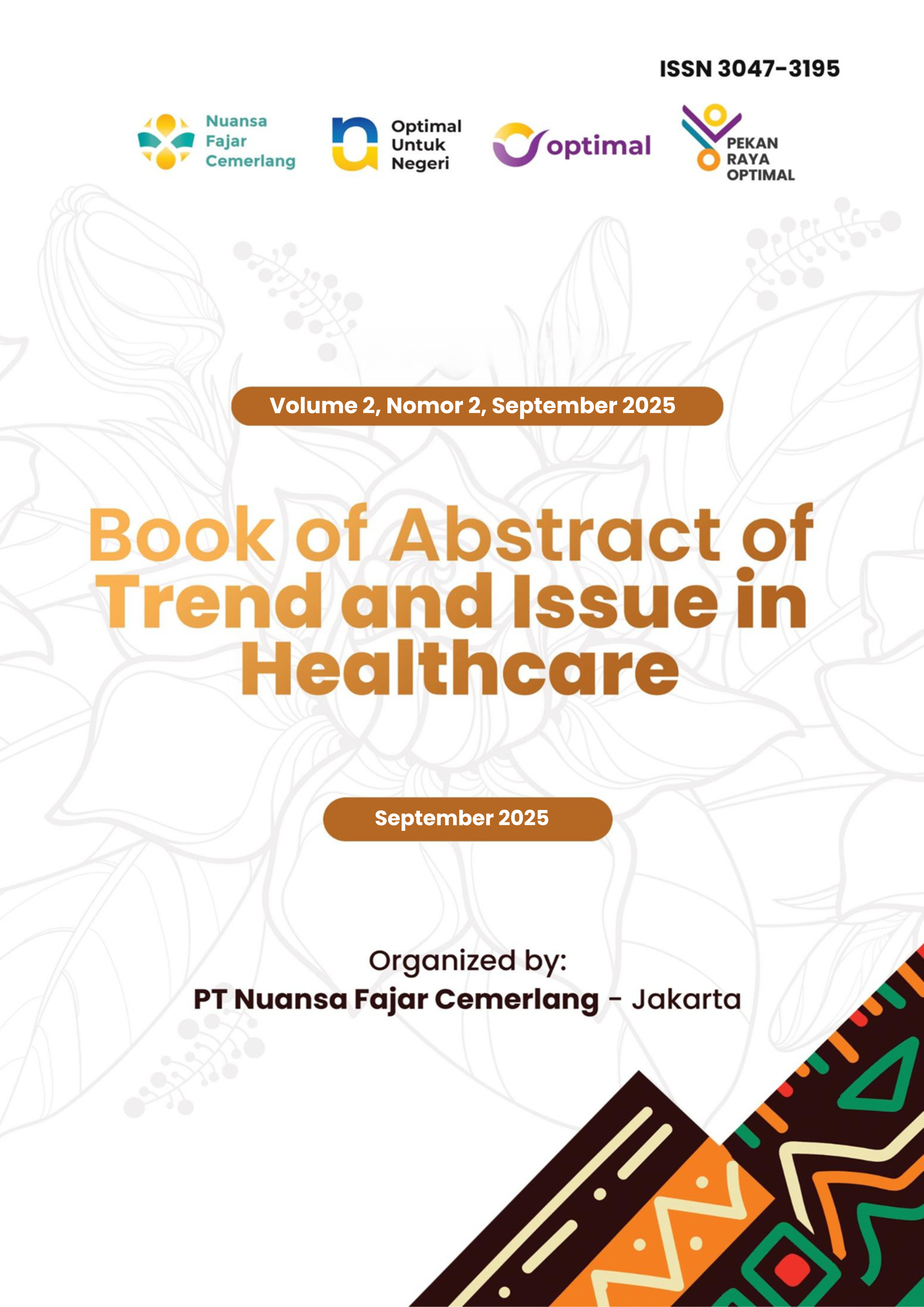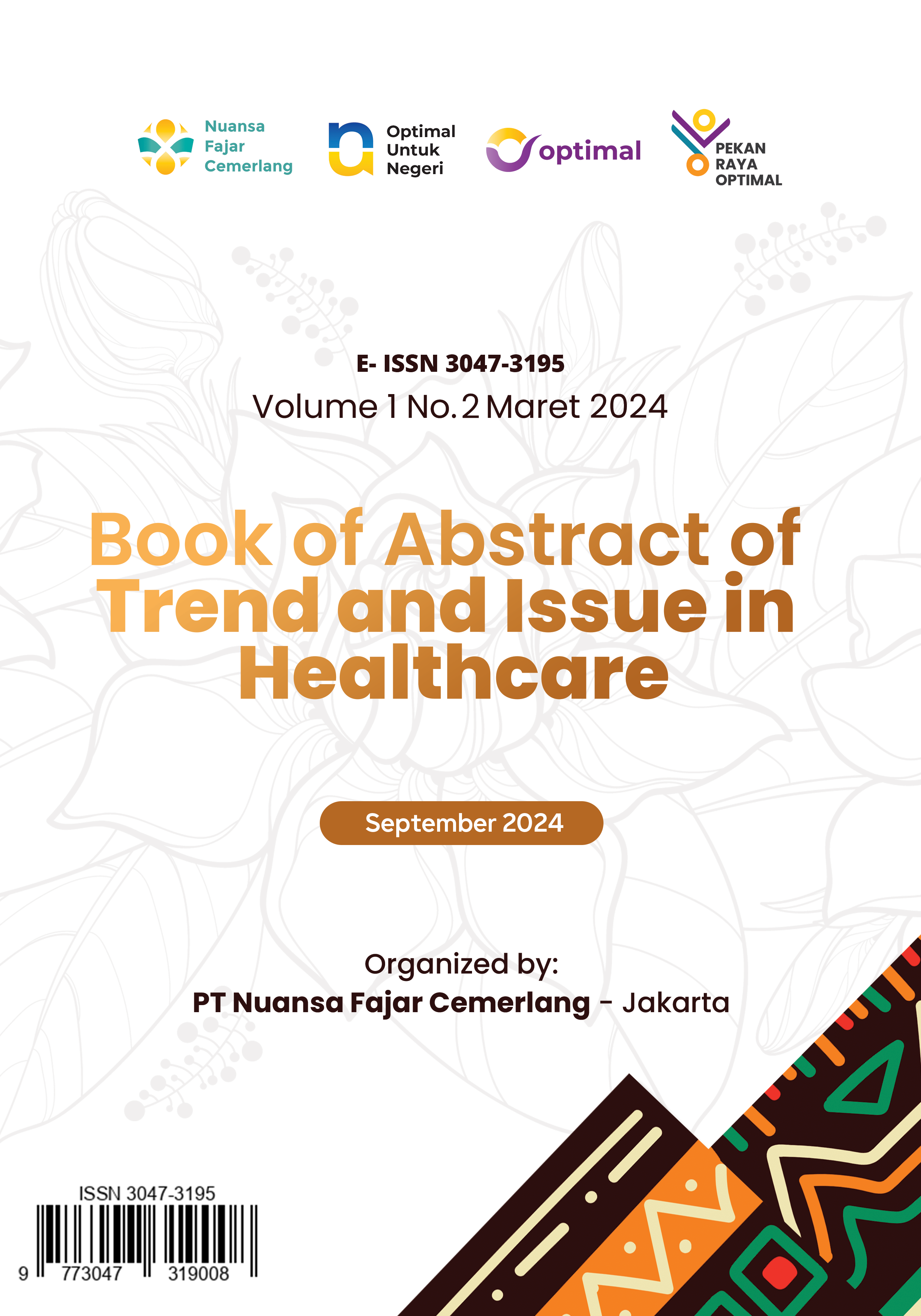 "Trends and Issues in Healthcare" merupakan sebuah kumpulan abstrak penelitian ilmiah yang disusun dari hasil karya para dosen seluruh Indonesia yang berpartisipasi. Diselenggarakan oleh PT Nuansa Fajar Cemerlang & PT Optimal Untuk Negeri sebagai upaya untuk menggali tren terbaru dan isu-isu penting dalam bidang kesehatan.